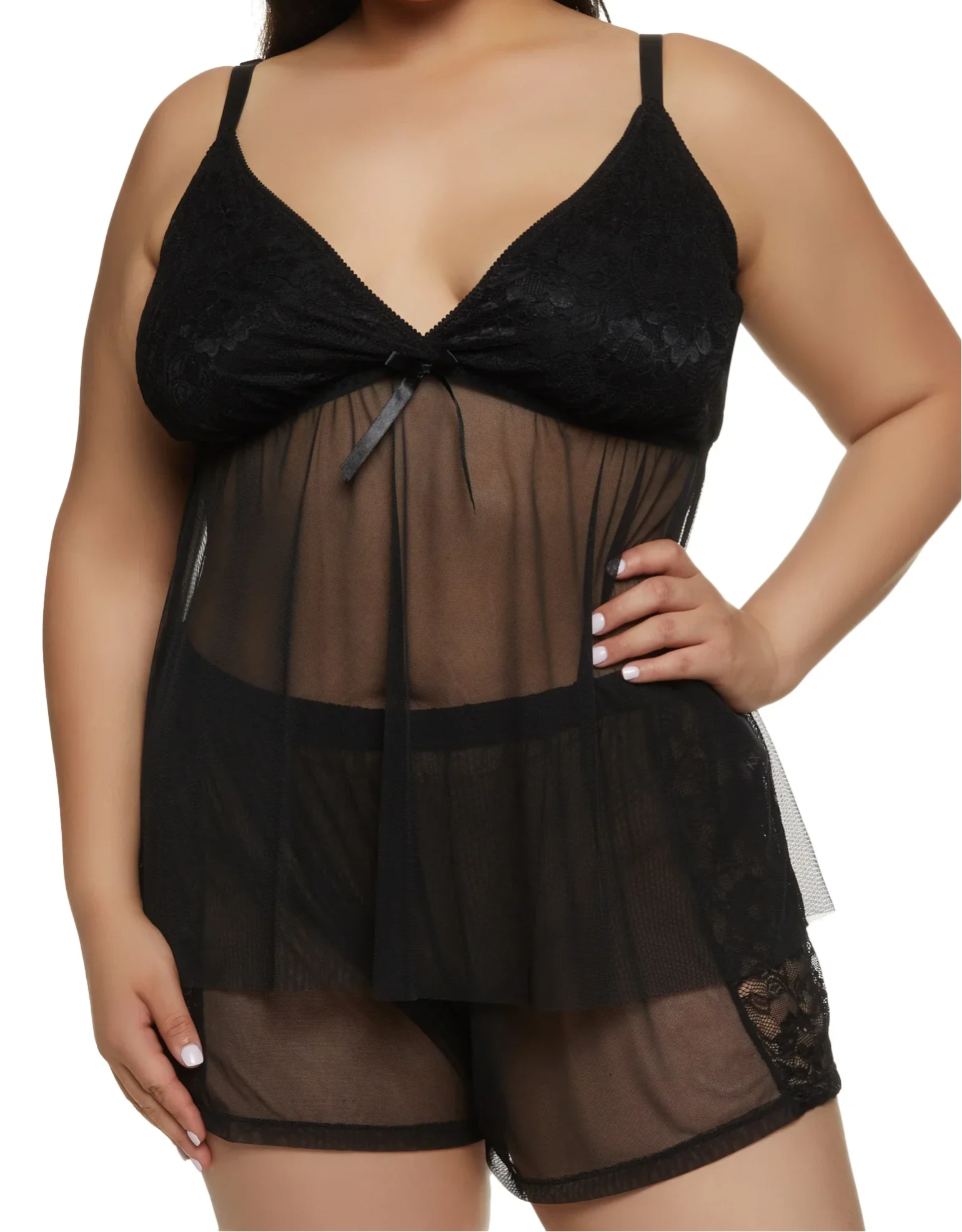 Sexy Women's Plus Size Lace Mesh Cami Babydoll and Shorts Set of 2 Pcs.