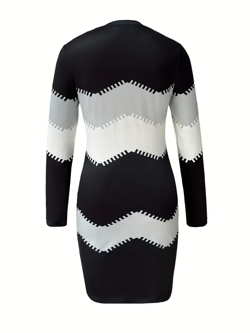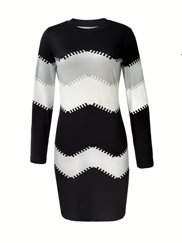 Women's Plus Color Block Casual Crew Neck Bodycon Dress.