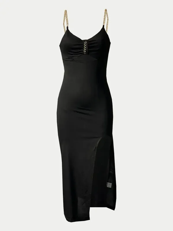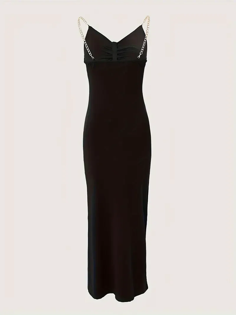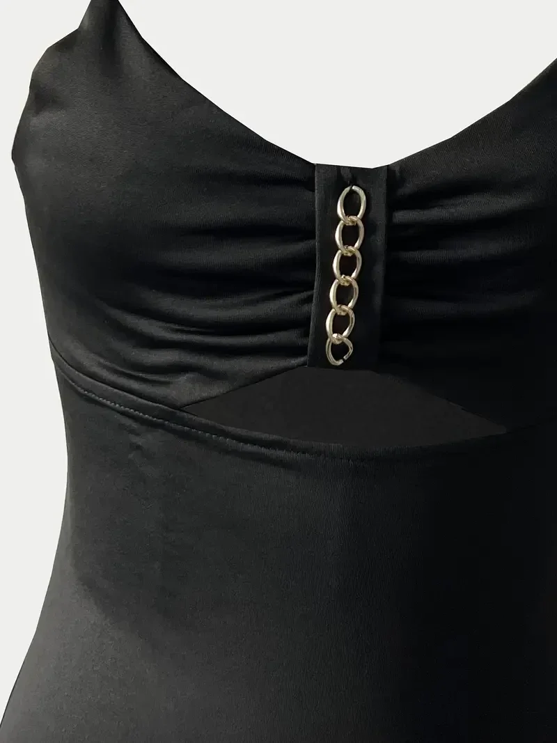 Women's Elegant Chain Strap Bodycon Dress, Sleeveless Cut Out Split Style for Party, Banquet or, for any other occasion.