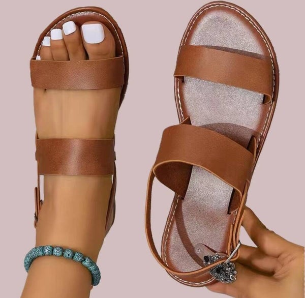 Women's Solid Color Open Toe Buckle Strap Slingback Shoes.