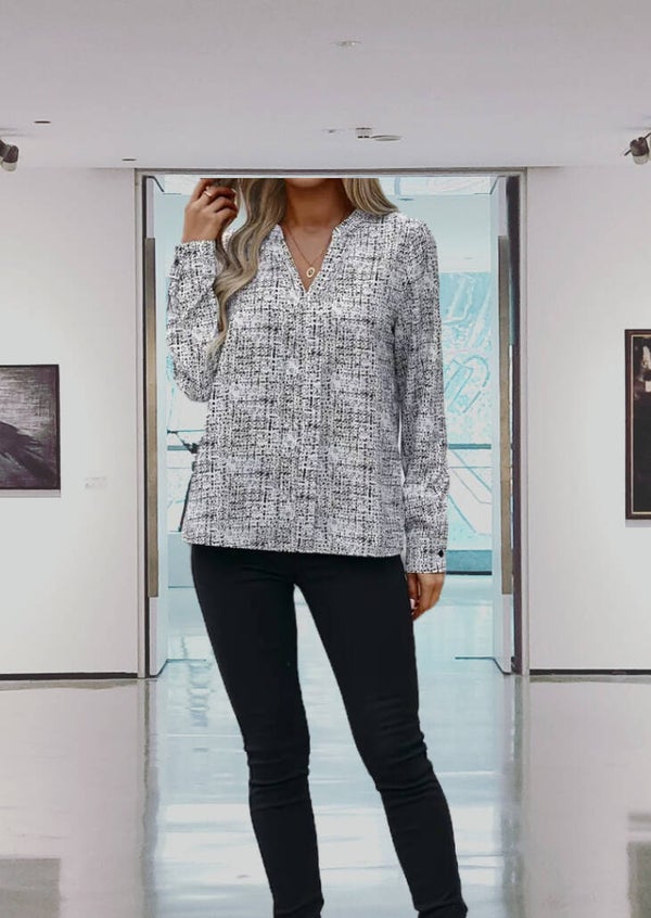 Women's Print V Neck Blouse, Elegant Long Sleeve Blouse.
