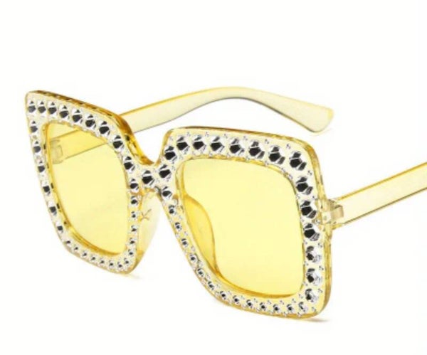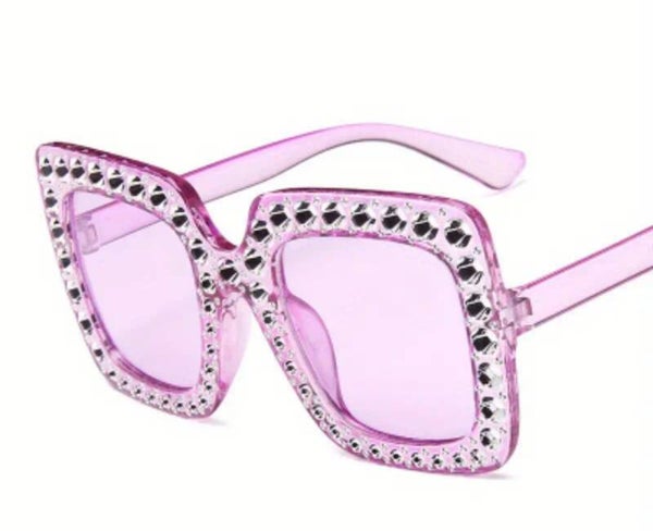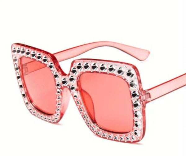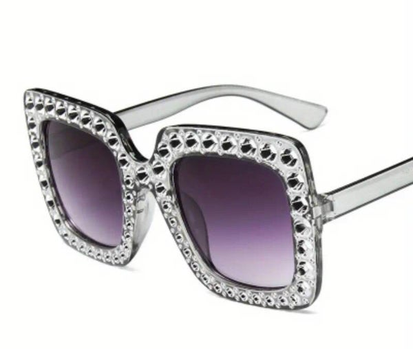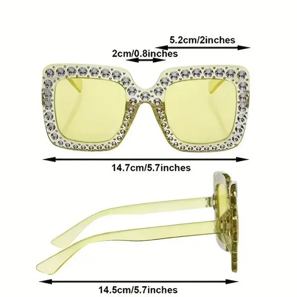 Women's Rhinestone Decor Square Fashion Sunglasses, Mod Gradient Lens, Outdoor Eyewear.