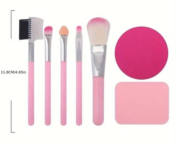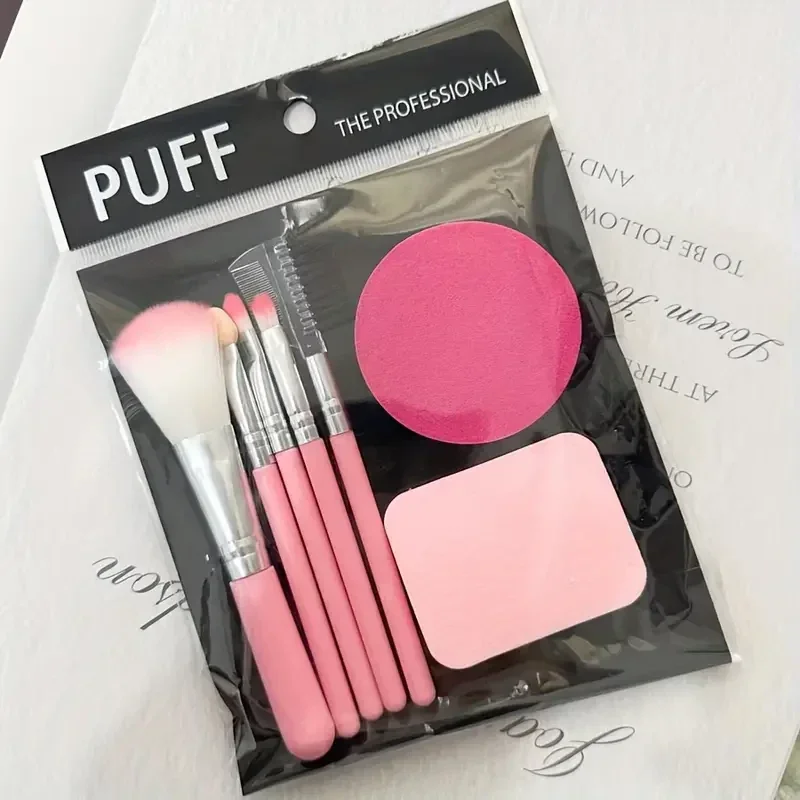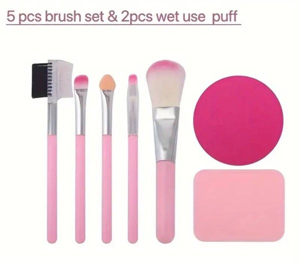 5pcs Makeup Brushes + 2pcs Powder Puffs Set, Dry and Wet Dual-use Powder Puff.