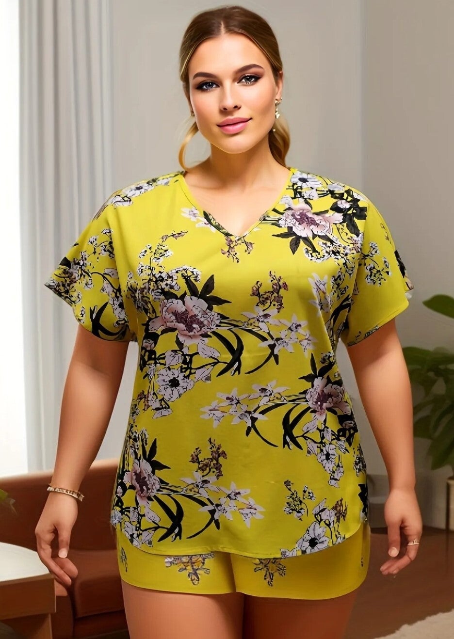 Women's Plus Floral Print Cut Out Bat Sleeve V Neck Blouse