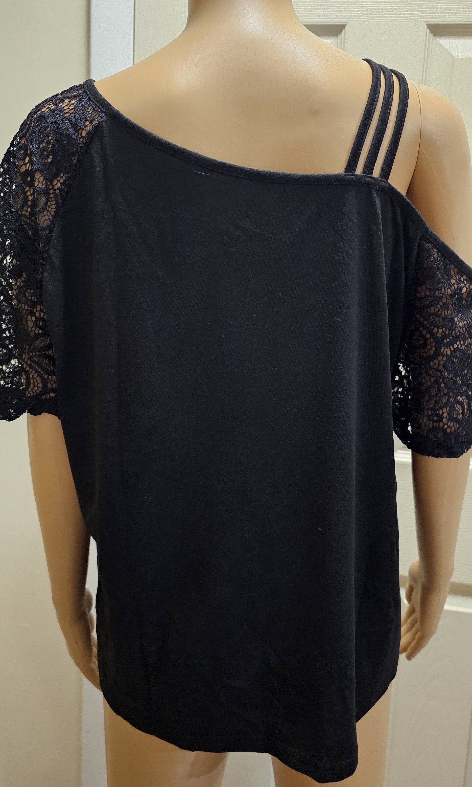 Women's Contrast Lace Asymmetric Shoulder Top, Puerto Rico Design