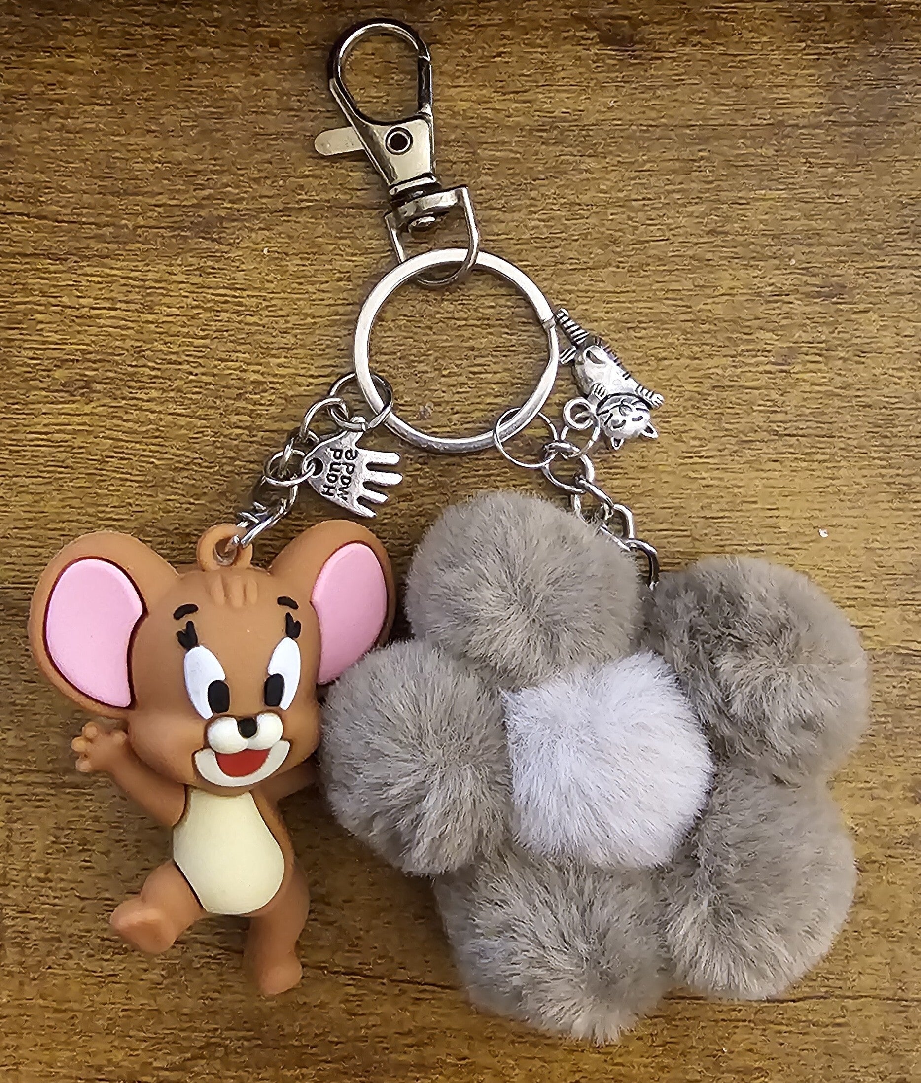 Featuring the iconic Tom or Jerry, this unique accessory is paired with a soft plush flower, handcrafted by me. Also available in other styles and with various charms. It is a playful and charming piece that adds a touch of fun to any bag, purse, or set of keys.