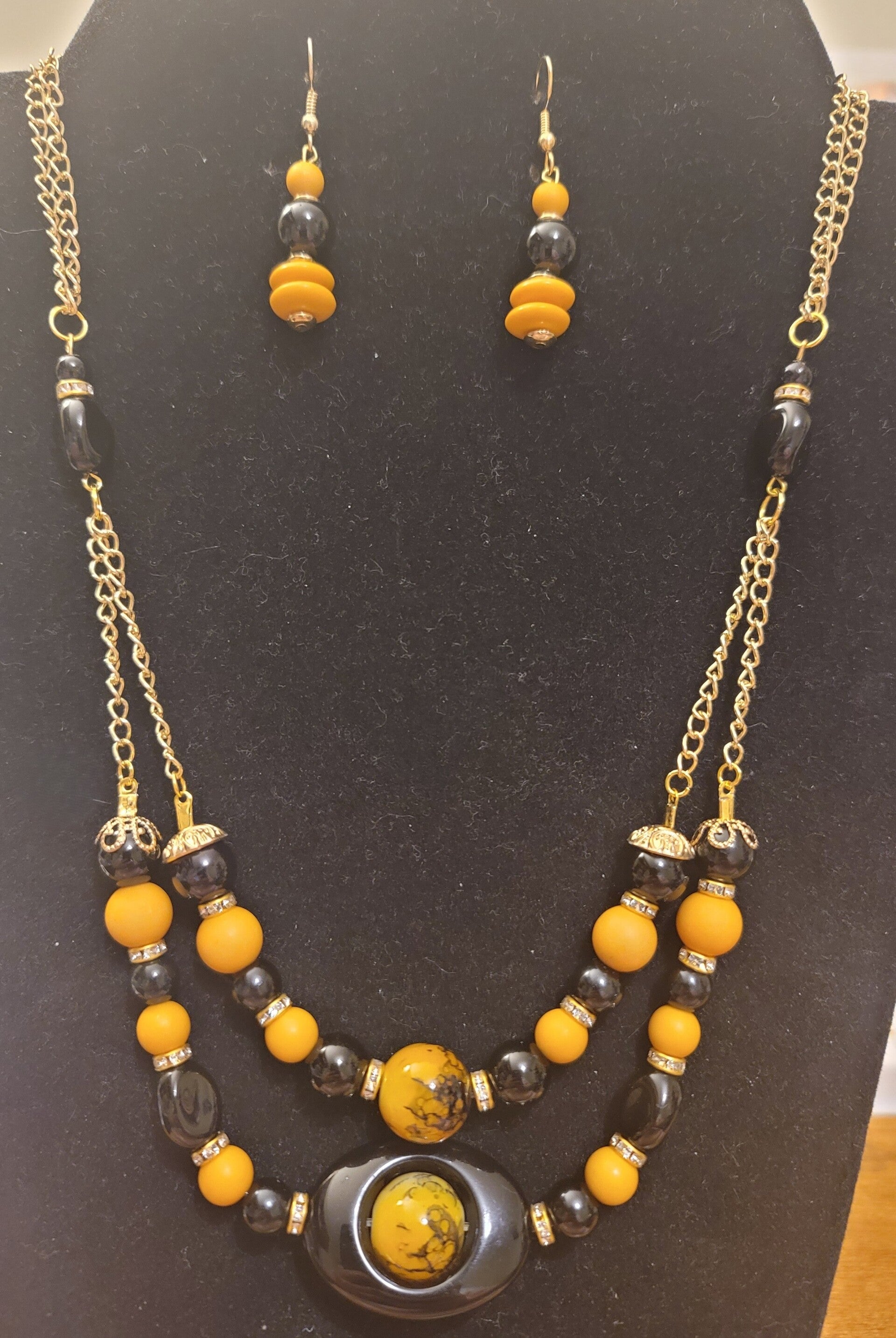 This stunning set features a beautifully designed multi-layered necklace paired with matching earrings.