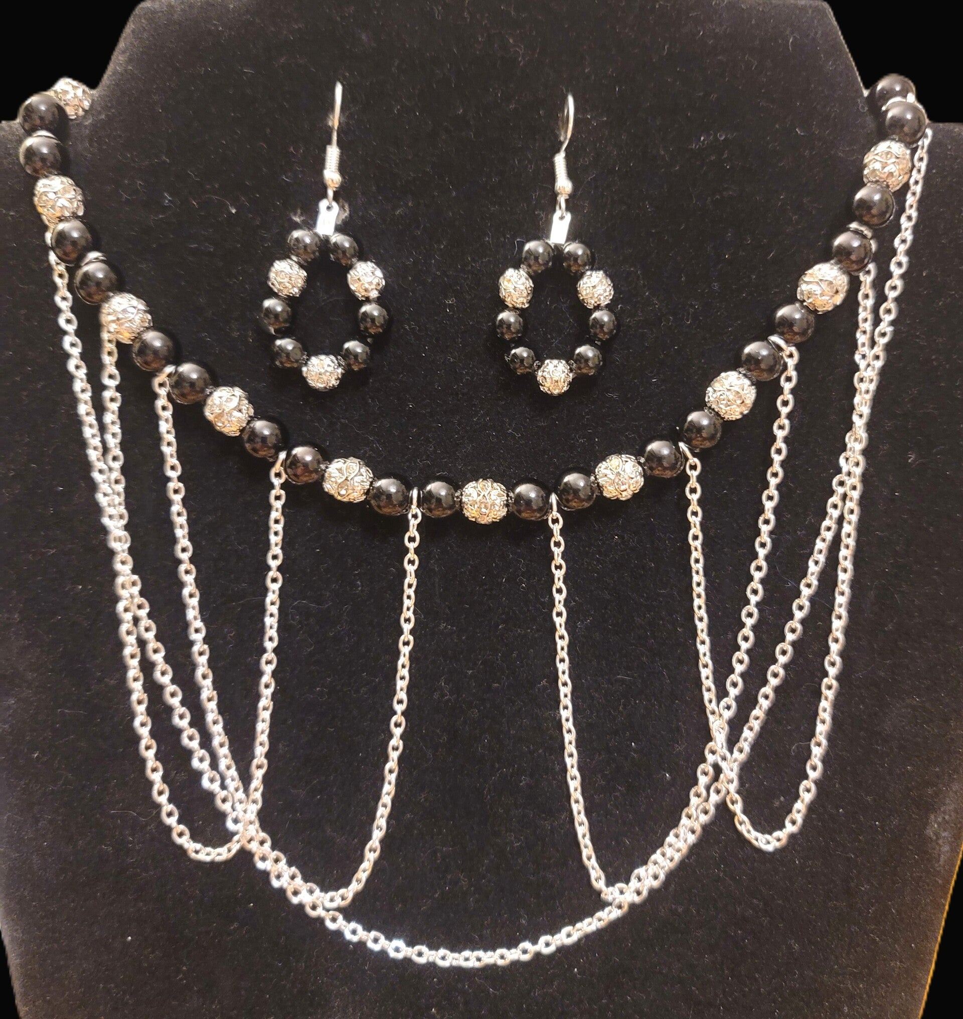 This set features a beautiful choker-style necklace designed to sit elegantly at the neckline, paired with matching drop earrings. Each piece is meticulously handcrafted by me, blending unique textures and high-quality elements for a one-of-a-kind look.