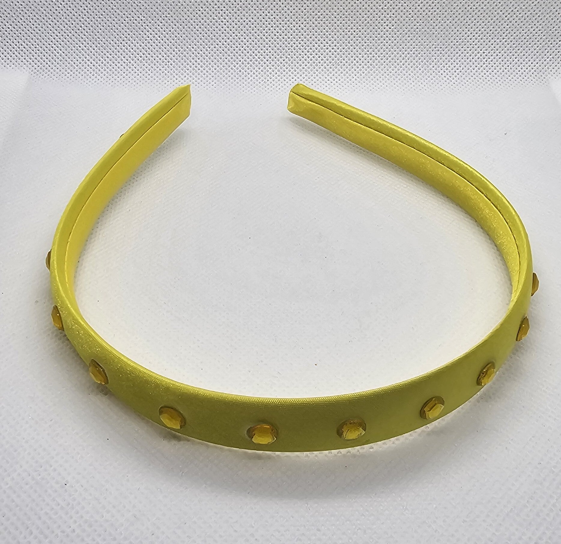 - Material: Satin-covered slim band with high-quality resin rhinestones.