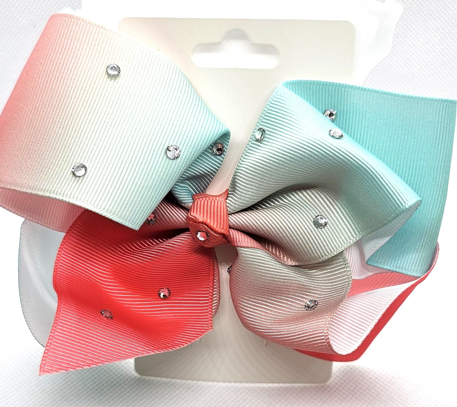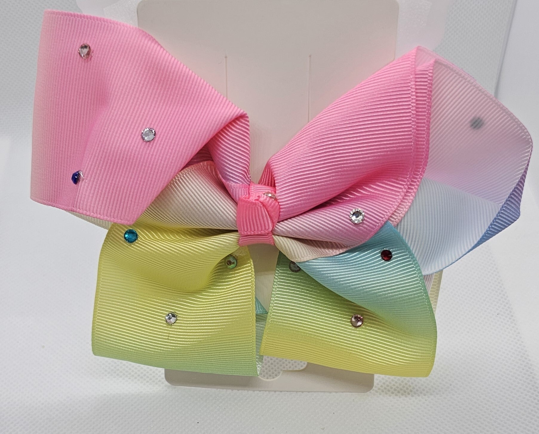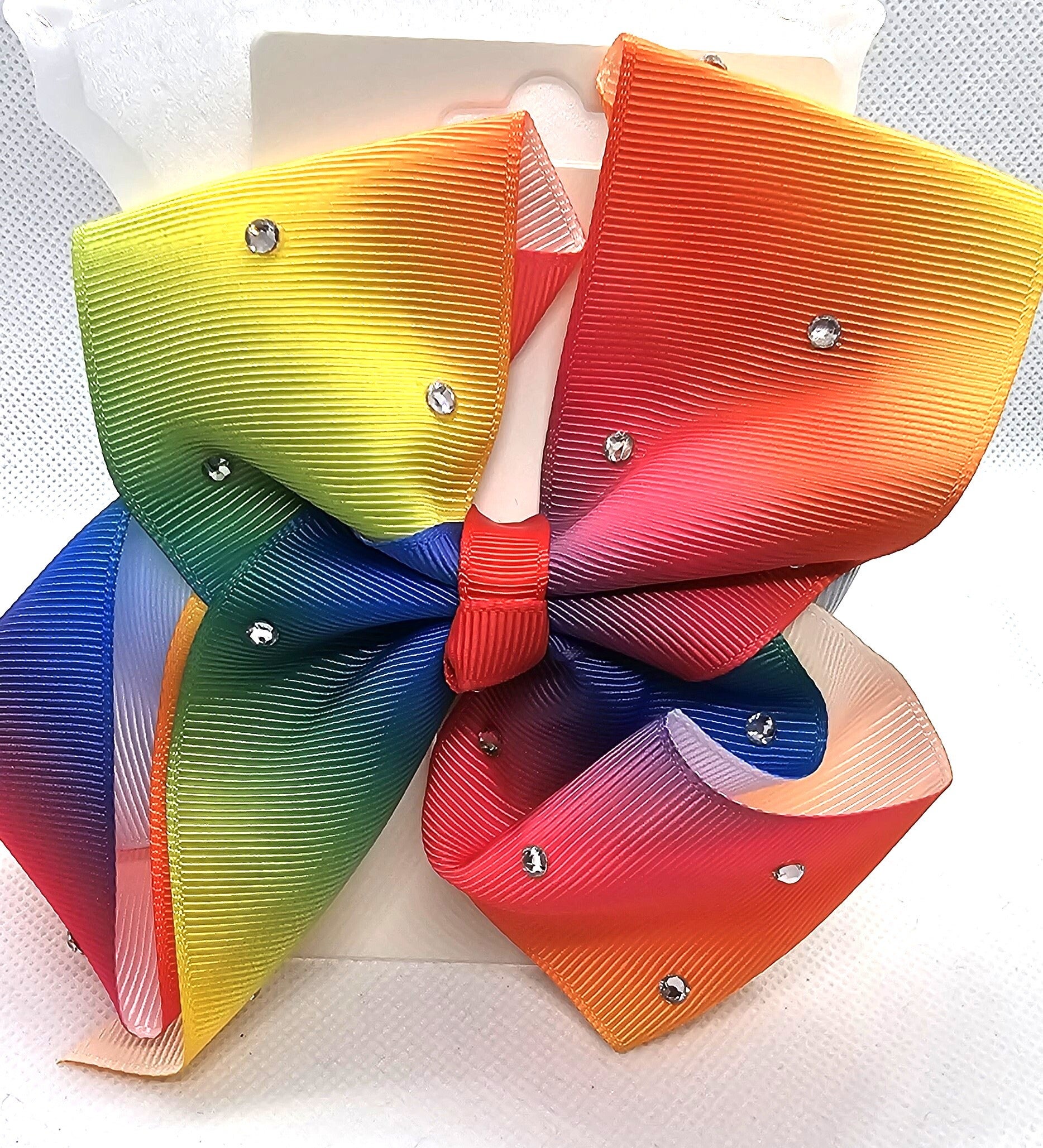 - Design: Large classic boutique bow with a colorful ombre/gradient effect.