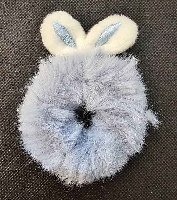 Add a playful and cozy touch to your hairstyle with this adorable plush scrunchie. Featuring soft faux fur and charming rabbit ear accents, this oversized accessory provides a secure hold while making a cute, stylish statement in any ponytail or bun.