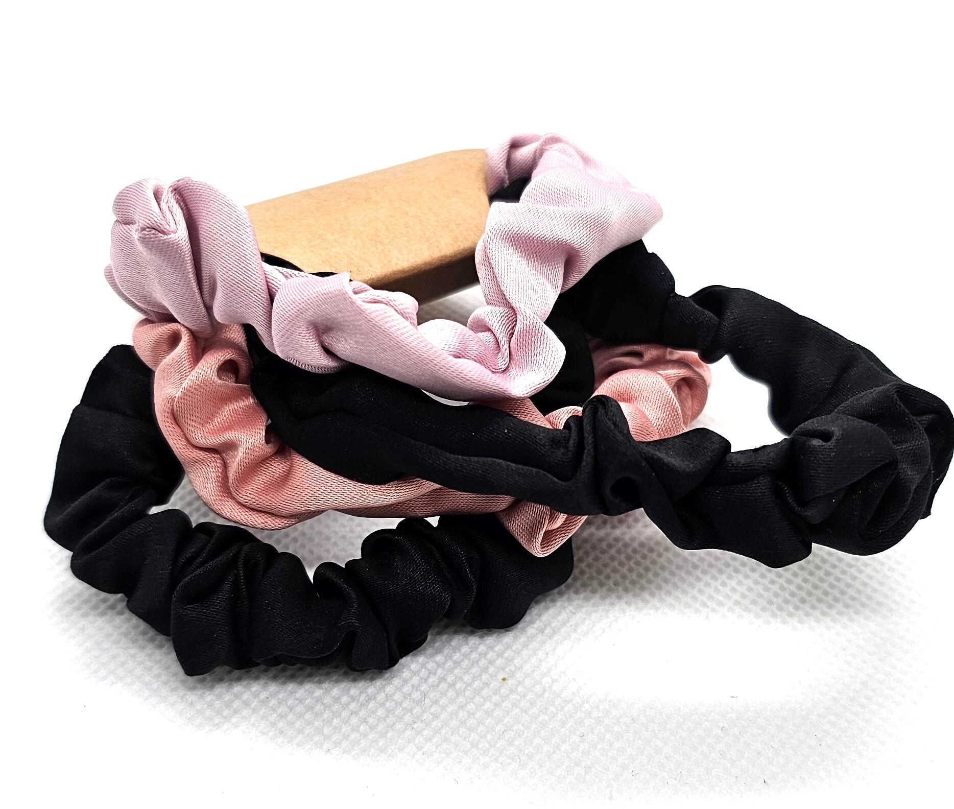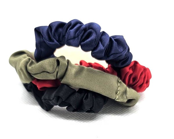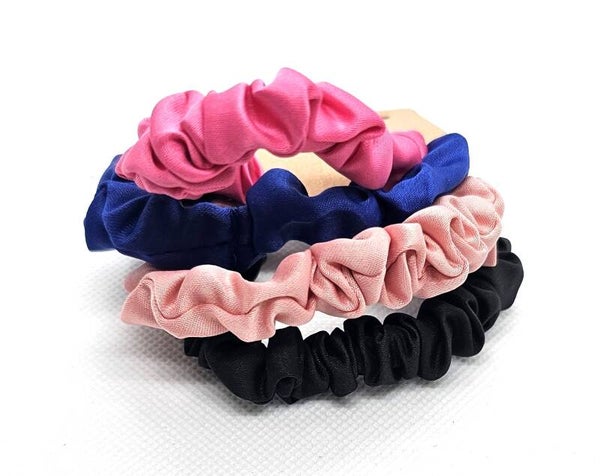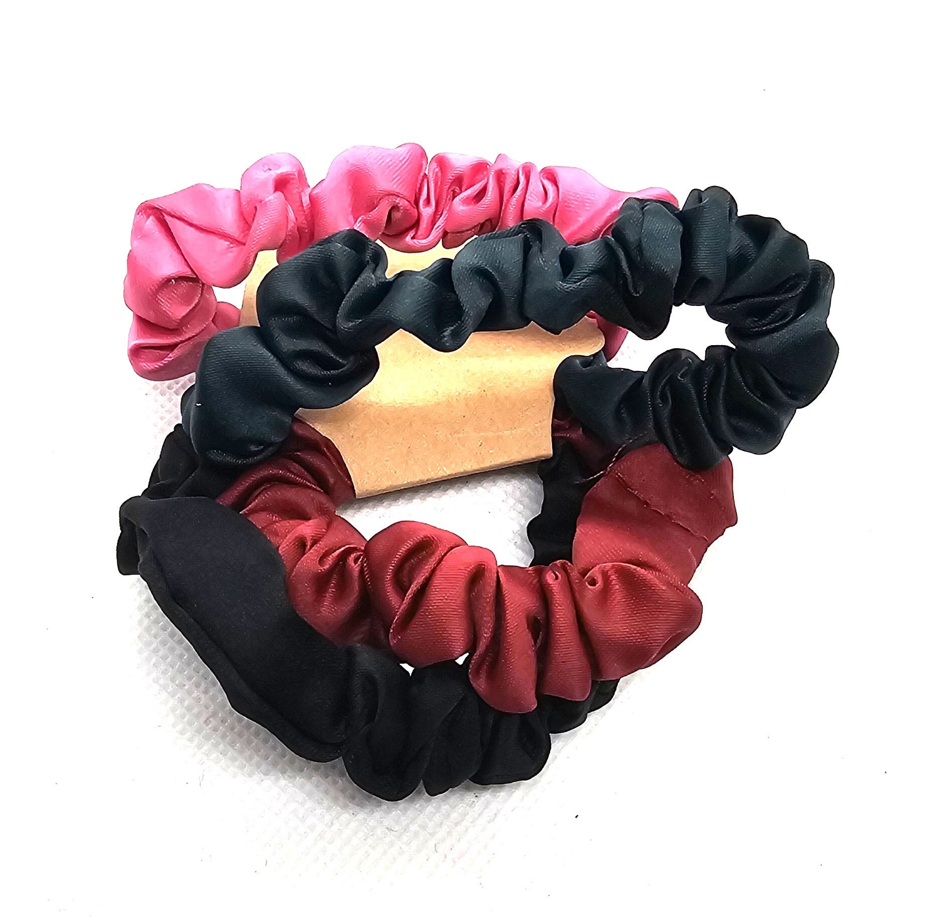 Elevate your hair game with this chic satin scrunchie set. Featuring a bold mix of deep jewel tones, these soft, slender accessories provide a secure hold while adding a sophisticated touch of color to any ponytail or bun.