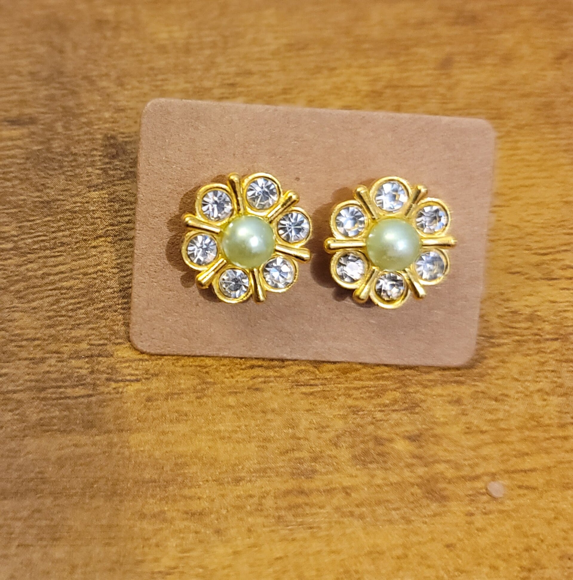 Handmade Color Pearl & Crystal "Blossom" Stud Earrings