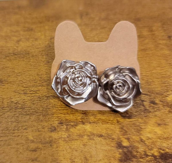 Handmade Satin-Finish Rose Stud Earrings