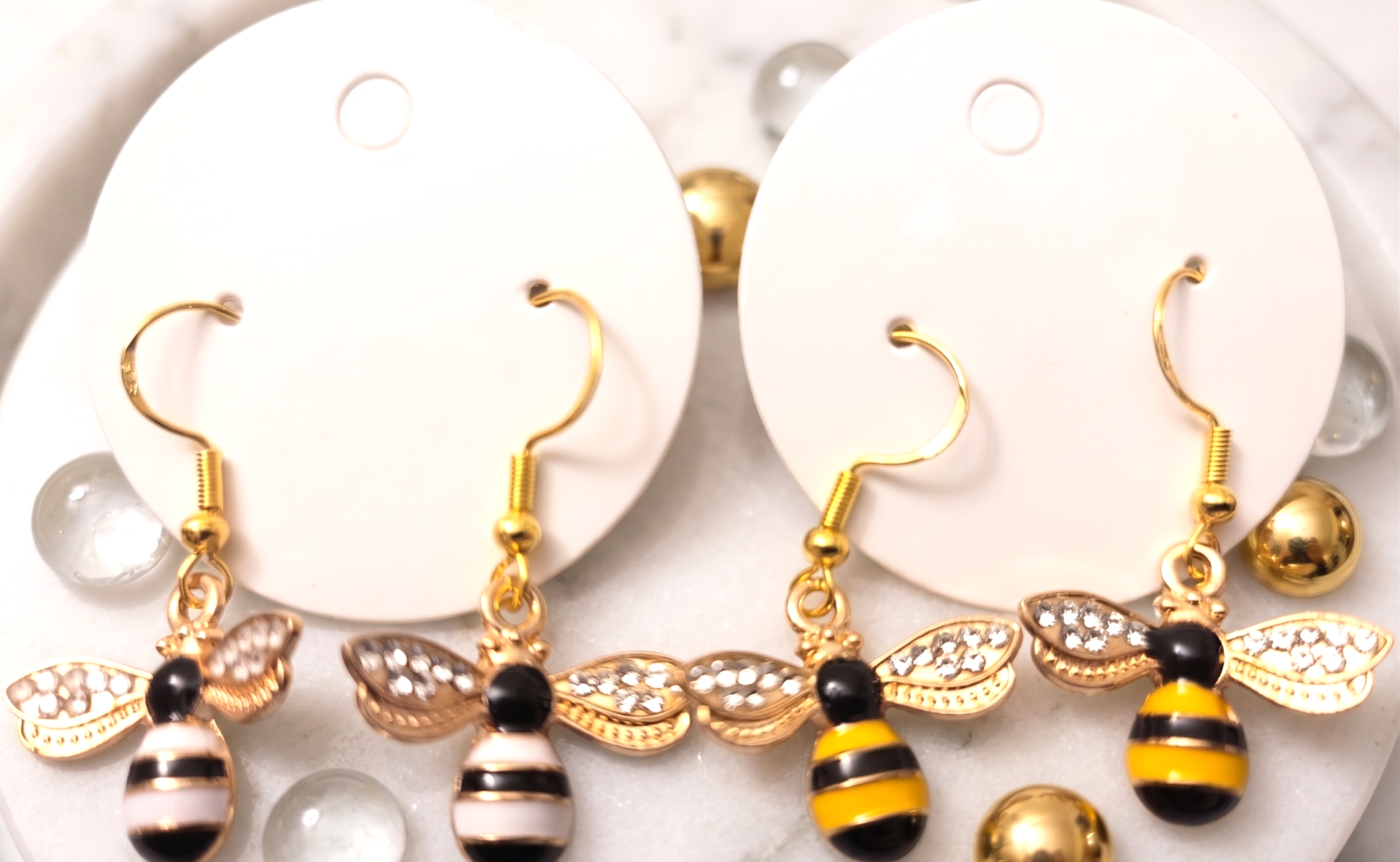Add a sweet and nature-inspired touch to your jewelry collection with these beautiful handmade bumble bee earrings. Featuring detailed enameled bodies and wings encrusted with sparkling rhinestones, these elegant gold-tone dangles are perfect for bee lovers and nature enthusiasts alike.