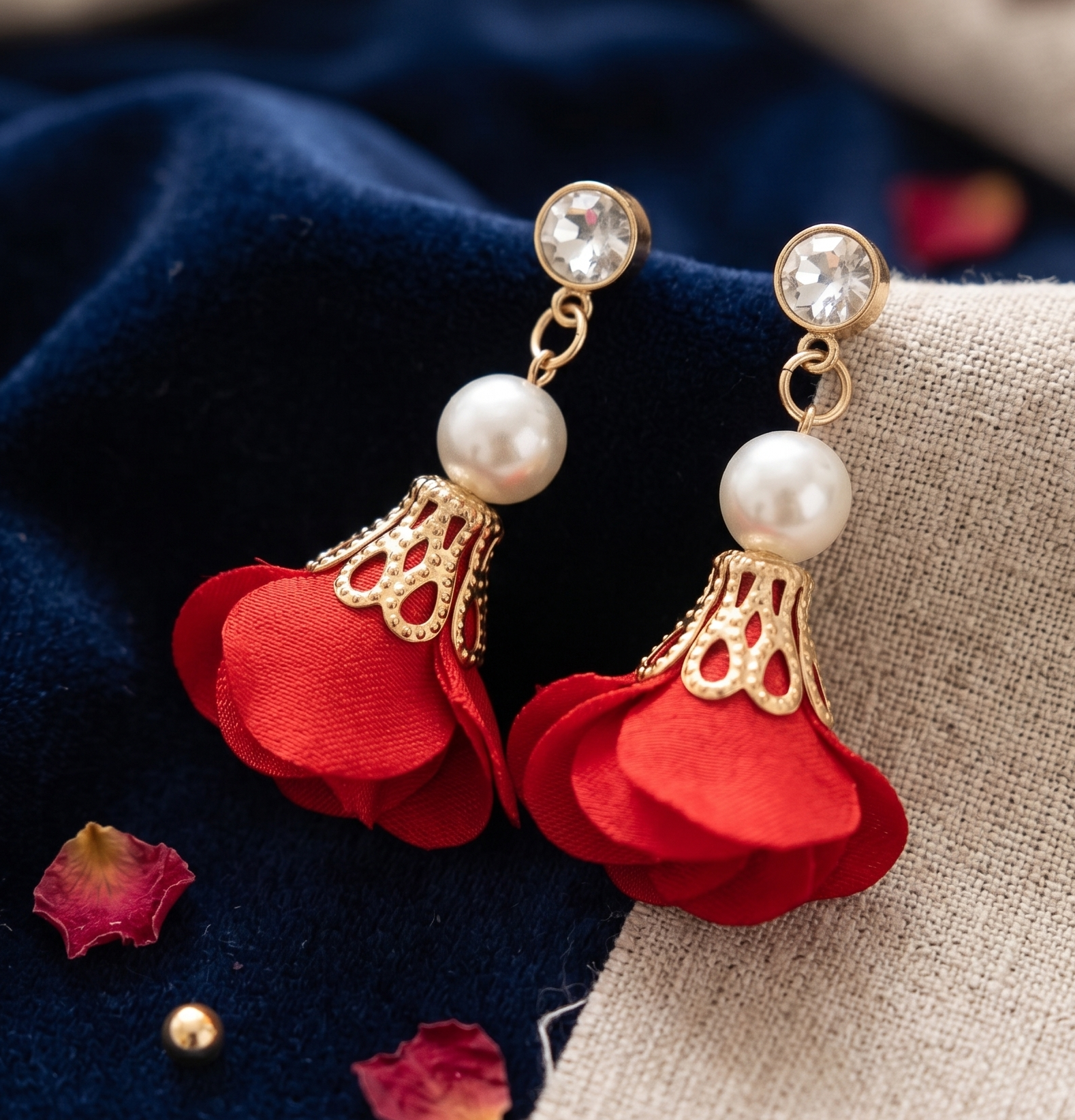 Add a touch of romantic sophistication to your look with these stunning handmade tassel earrings. Featuring delicate silk-style petals, a graceful pearl accent, and a shimmering crystal stud, these lightweight dangles offer beautiful movement and elegance for any occasion.
